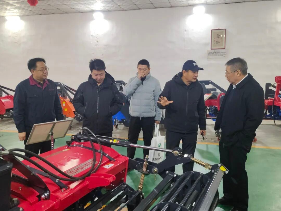 2025年11月20日,中国农业机械流通协会副会长游凌率领协会秘书处总监张华光,副主任朱立国、苏阳等一行,莅临河北圣和农业机械有限公司进行实地考察与专题调研。河北圣和公司董事长王新芳、副总经理王帅、营销管理中心总经理郭广彦等公司高层全程陪同,并就农机企业国际化发展、展会成果转化及海外市场布局等议题进行了深入交流。
