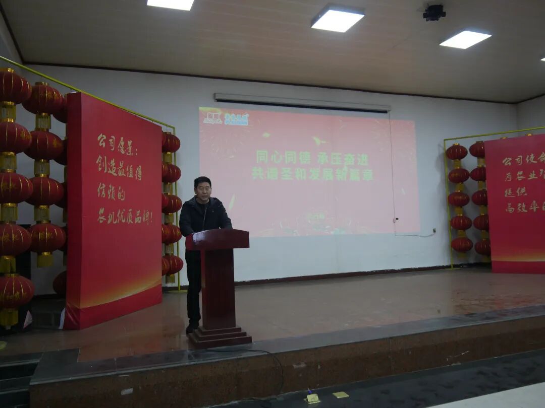 公司总经理师西峰发表了题为《同心同德,承压奋进,共谱圣和发展新篇章》的主旨讲话。师总首先代表公司向全体员工的辛勤付出和员工家属的默默支持致以诚挚感谢和新年祝福,随后全面回顾了公司发展的关键历程与辉煌成就。