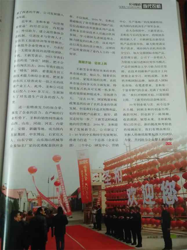 2016 年 3 月 6 日 是 河 北 圣 和 农 业 机 械 有 限 公 司 ( 以 下 简 称圣 和 ) 值 得 纪 念 的 日子。